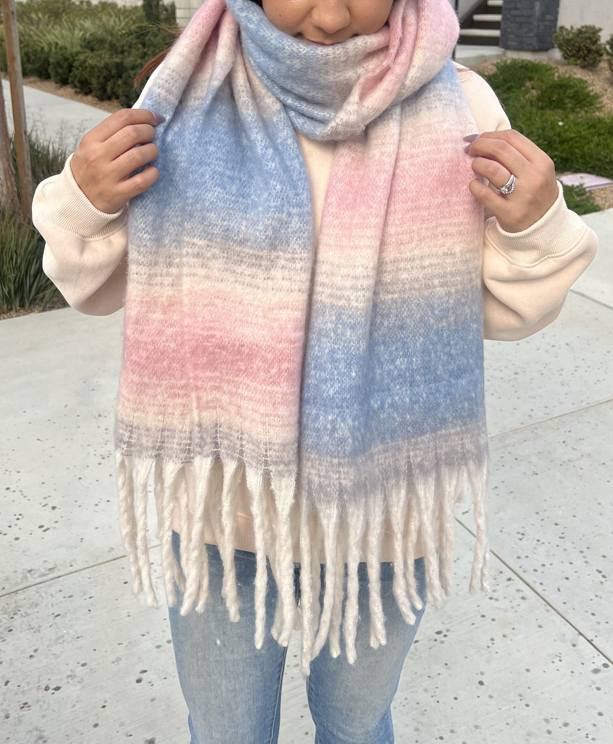 {"id":10319230927029,"title":"Blue Desert Air Scarf","handle":"desert-air-scarf","description":"\u003cul\u003e\n\u003cli\u003eSuper soft\u003c\/li\u003e\n\u003cli\u003ePlush blanket scarf\u003c\/li\u003e\n\u003cli\u003eTwisted tassel ends\u003c\/li\u003e\n\u003cli\u003eOne size fits most\u003c\/li\u003e\n\u003c\/ul\u003e","published_at":"2025-12-19T15:08:36-08:00","created_at":"2025-12-19T14:39:34-08:00","vendor":"Justin\u0026Taylor","type":"","tags":["accessories","accessory","color-blue","gift","ombre","scarf","scarves","sweater weather"],"price":3200,"price_min":3200,"price_max":3200,"available":true,"price_varies":false,"compare_at_price":3200,"compare_at_price_min":3200,"compare_at_price_max":3200,"compare_at_price_varies":false,"variants":[{"id":52116651114677,"title":"Blue","option1":"Blue","option2":null,"option3":null,"sku":"5100207-BLUE1","requires_shipping":true,"taxable":true,"featured_image":null,"available":true,"name":"Blue Desert Air Scarf - Blue","public_title":"Blue","options":["Blue"],"price":3200,"weight":290,"compare_at_price":3200,"inventory_quantity":3,"inventory_management":"shopify","inventory_policy":"deny","barcode":"51114677","requires_selling_plan":false,"selling_plan_allocations":[]}],"images":["\/\/oohlaluxe.com\/cdn\/shop\/files\/22032790_aa66d7f1-c5c7-45ac-b75d-dd3a37a75d7e.jpg?v=1766185380","\/\/oohlaluxe.com\/cdn\/shop\/files\/22872862_d6c448b7-5eb5-4e04-9fd5-b3d8b4a26e80.jpg?v=1766185380","\/\/oohlaluxe.com\/cdn\/shop\/files\/22872862_ab645cfb-0e80-4d72-97ca-117faa108f1c.jpg?v=1766185380","\/\/oohlaluxe.com\/cdn\/shop\/files\/22872862_f4cb8679-3c0e-499a-91d5-b55a44a86d3e.jpg?v=1766185380","\/\/oohlaluxe.com\/cdn\/shop\/files\/22032790_7ee1018d-e3f0-4edd-856c-f9058d415af3.jpg?v=1766185380","\/\/oohlaluxe.com\/cdn\/shop\/files\/22032790_5b7b5d84-a721-47d0-a93c-e5c1ff748e7a.jpg?v=1766185380"],"featured_image":"\/\/oohlaluxe.com\/cdn\/shop\/files\/22032790_aa66d7f1-c5c7-45ac-b75d-dd3a37a75d7e.jpg?v=1766185380","options":["Color"],"media":[{"alt":null,"id":63032474599605,"position":1,"preview_image":{"aspect_ratio":0.746,"height":3013,"width":2249,"src":"\/\/oohlaluxe.com\/cdn\/shop\/files\/22032790_aa66d7f1-c5c7-45ac-b75d-dd3a37a75d7e.jpg?v=1766185380"},"aspect_ratio":0.746,"height":3013,"media_type":"image","src":"\/\/oohlaluxe.com\/cdn\/shop\/files\/22032790_aa66d7f1-c5c7-45ac-b75d-dd3a37a75d7e.jpg?v=1766185380","width":2249},{"alt":null,"id":63032474665141,"position":2,"preview_image":{"aspect_ratio":0.75,"height":5712,"width":4284,"src":"\/\/oohlaluxe.com\/cdn\/shop\/files\/22872862_d6c448b7-5eb5-4e04-9fd5-b3d8b4a26e80.jpg?v=1766185380"},"aspect_ratio":0.75,"height":5712,"media_type":"image","src":"\/\/oohlaluxe.com\/cdn\/shop\/files\/22872862_d6c448b7-5eb5-4e04-9fd5-b3d8b4a26e80.jpg?v=1766185380","width":4284},{"alt":null,"id":63032474632373,"position":3,"preview_image":{"aspect_ratio":0.75,"height":5712,"width":4284,"src":"\/\/oohlaluxe.com\/cdn\/shop\/files\/22872862_ab645cfb-0e80-4d72-97ca-117faa108f1c.jpg?v=1766185380"},"aspect_ratio":0.75,"height":5712,"media_type":"image","src":"\/\/oohlaluxe.com\/cdn\/shop\/files\/22872862_ab645cfb-0e80-4d72-97ca-117faa108f1c.jpg?v=1766185380","width":4284},{"alt":null,"id":63032474697909,"position":4,"preview_image":{"aspect_ratio":0.75,"height":5712,"width":4284,"src":"\/\/oohlaluxe.com\/cdn\/shop\/files\/22872862_f4cb8679-3c0e-499a-91d5-b55a44a86d3e.jpg?v=1766185380"},"aspect_ratio":0.75,"height":5712,"media_type":"image","src":"\/\/oohlaluxe.com\/cdn\/shop\/files\/22872862_f4cb8679-3c0e-499a-91d5-b55a44a86d3e.jpg?v=1766185380","width":4284},{"alt":null,"id":63032474566837,"position":5,"preview_image":{"aspect_ratio":0.824,"height":2862,"width":2358,"src":"\/\/oohlaluxe.com\/cdn\/shop\/files\/22032790_7ee1018d-e3f0-4edd-856c-f9058d415af3.jpg?v=1766185380"},"aspect_ratio":0.824,"height":2862,"media_type":"image","src":"\/\/oohlaluxe.com\/cdn\/shop\/files\/22032790_7ee1018d-e3f0-4edd-856c-f9058d415af3.jpg?v=1766185380","width":2358},{"alt":null,"id":63032474534069,"position":6,"preview_image":{"aspect_ratio":0.725,"height":2935,"width":2129,"src":"\/\/oohlaluxe.com\/cdn\/shop\/files\/22032790_5b7b5d84-a721-47d0-a93c-e5c1ff748e7a.jpg?v=1766185380"},"aspect_ratio":0.725,"height":2935,"media_type":"image","src":"\/\/oohlaluxe.com\/cdn\/shop\/files\/22032790_5b7b5d84-a721-47d0-a93c-e5c1ff748e7a.jpg?v=1766185380","width":2129}],"requires_selling_plan":false,"selling_plan_groups":[],"content":"\u003cul\u003e\n\u003cli\u003eSuper soft\u003c\/li\u003e\n\u003cli\u003ePlush blanket scarf\u003c\/li\u003e\n\u003cli\u003eTwisted tassel ends\u003c\/li\u003e\n\u003cli\u003eOne size fits most\u003c\/li\u003e\n\u003c\/ul\u003e"}