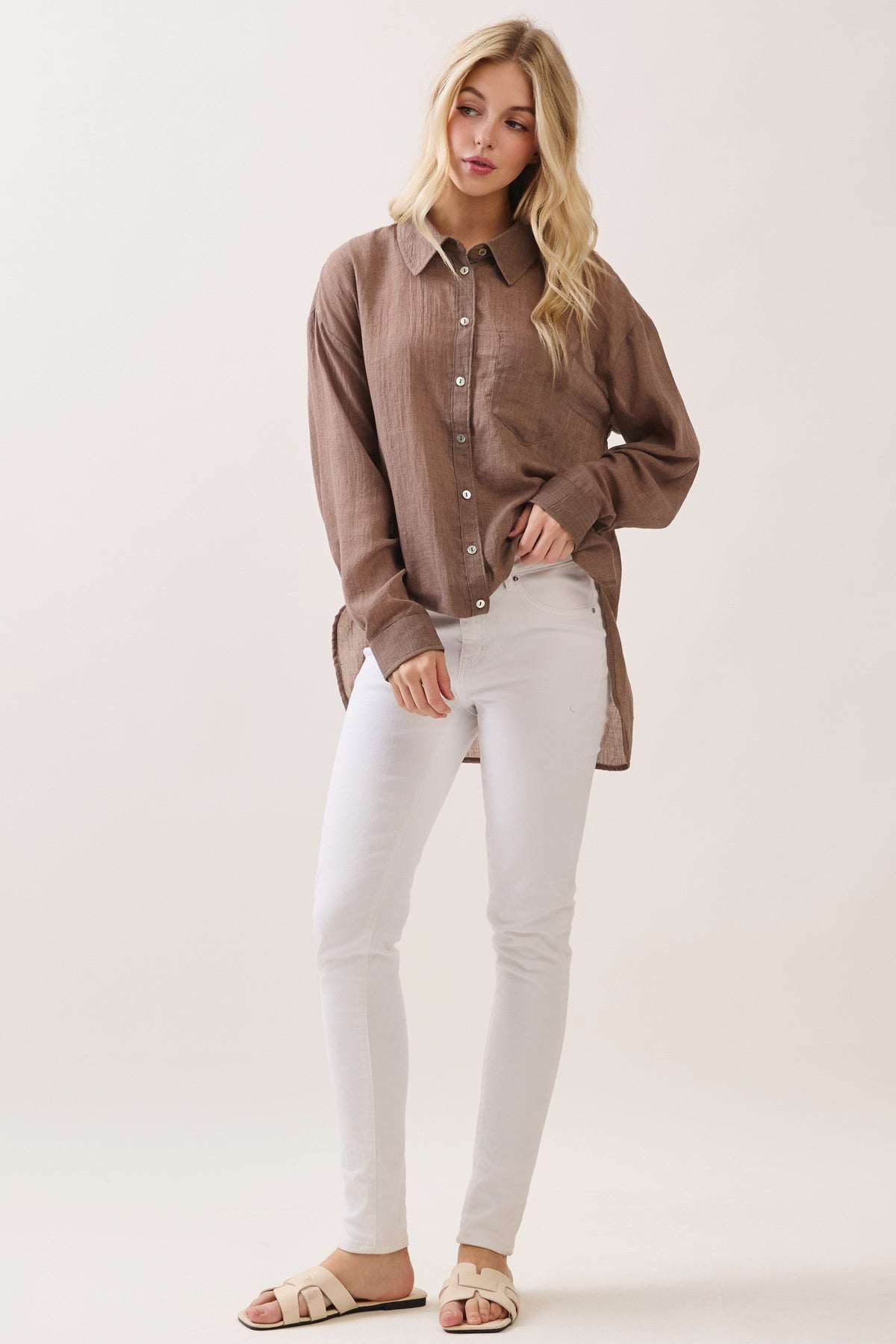 {"id":10330362609845,"title":"Dobrina Button Down","handle":"dobrina-button-down","description":"\u003cul\u003e\n\u003cli\u003e80% Polyester, 20% Cotton\u003c\/li\u003e\n\u003cli\u003eSemi sheer\u003c\/li\u003e\n\u003cli\u003eRelaxed fit\u003c\/li\u003e\n\u003cli\u003eLightweight\u003c\/li\u003e\n\u003cli\u003eCollared\u003c\/li\u003e\n\u003cli\u003eFront button closure\u003c\/li\u003e\n\u003cli\u003eButtoned cuffs\u003c\/li\u003e\n\u003cli\u003e1 chest pocket\u003c\/li\u003e\n\u003cli\u003eSide slits\u003c\/li\u003e\n\u003cli\u003eModel is 5'8\" wearing a size Small\u003c\/li\u003e\n\u003c\/ul\u003e","published_at":"2026-01-09T10:24:30-08:00","created_at":"2026-01-09T10:21:00-08:00","vendor":"Final Touch","type":"","tags":["color-mocha","color-off-white","long sleeve","long sleeve top","Long sleeves","neutral","neutrals","size-large","size-medium","size-small","white"],"price":5800,"price_min":5800,"price_max":5800,"available":true,"price_varies":false,"compare_at_price":null,"compare_at_price_min":0,"compare_at_price_max":0,"compare_at_price_varies":false,"variants":[{"id":52154261045429,"title":"Off White \/ Small","option1":"Off White","option2":"Small","option3":null,"sku":"VT3062B-OFFWHITE-S","requires_shipping":true,"taxable":true,"featured_image":{"id":74162035392693,"product_id":10330362609845,"position":1,"created_at":"2026-01-09T10:18:40-08:00","updated_at":"2026-01-09T10:18:41-08:00","alt":null,"width":2000,"height":3000,"src":"\/\/oohlaluxe.com\/cdn\/shop\/files\/c932e6f6-bd11-435c-a3a2-015c042f4826.jpg?v=1767982721","variant_ids":[52154261045429,52154261078197,52154261110965]},"available":true,"name":"Dobrina Button Down - Off White \/ Small","public_title":"Off White \/ Small","options":["Off White","Small"],"price":5800,"weight":159,"compare_at_price":null,"inventory_quantity":2,"inventory_management":"shopify","inventory_policy":"deny","barcode":"61045429","featured_media":{"alt":null,"id":63120296706229,"position":1,"preview_image":{"aspect_ratio":0.667,"height":3000,"width":2000,"src":"\/\/oohlaluxe.com\/cdn\/shop\/files\/c932e6f6-bd11-435c-a3a2-015c042f4826.jpg?v=1767982721"}},"requires_selling_plan":false,"selling_plan_allocations":[]},{"id":52154261078197,"title":"Off White \/ Medium","option1":"Off White","option2":"Medium","option3":null,"sku":"VT3062B-OFFWHITE-M","requires_shipping":true,"taxable":true,"featured_image":{"id":74162035392693,"product_id":10330362609845,"position":1,"created_at":"2026-01-09T10:18:40-08:00","updated_at":"2026-01-09T10:18:41-08:00","alt":null,"width":2000,"height":3000,"src":"\/\/oohlaluxe.com\/cdn\/shop\/files\/c932e6f6-bd11-435c-a3a2-015c042f4826.jpg?v=1767982721","variant_ids":[52154261045429,52154261078197,52154261110965]},"available":true,"name":"Dobrina Button Down - Off White \/ Medium","public_title":"Off White \/ Medium","options":["Off White","Medium"],"price":5800,"weight":159,"compare_at_price":null,"inventory_quantity":2,"inventory_management":"shopify","inventory_policy":"deny","barcode":"61078197","featured_media":{"alt":null,"id":63120296706229,"position":1,"preview_image":{"aspect_ratio":0.667,"height":3000,"width":2000,"src":"\/\/oohlaluxe.com\/cdn\/shop\/files\/c932e6f6-bd11-435c-a3a2-015c042f4826.jpg?v=1767982721"}},"requires_selling_plan":false,"selling_plan_allocations":[]},{"id":52154261110965,"title":"Off White \/ Large","option1":"Off White","option2":"Large","option3":null,"sku":"VT3062B-OFFWHITE-L","requires_shipping":true,"taxable":true,"featured_image":{"id":74162035392693,"product_id":10330362609845,"position":1,"created_at":"2026-01-09T10:18:40-08:00","updated_at":"2026-01-09T10:18:41-08:00","alt":null,"width":2000,"height":3000,"src":"\/\/oohlaluxe.com\/cdn\/shop\/files\/c932e6f6-bd11-435c-a3a2-015c042f4826.jpg?v=1767982721","variant_ids":[52154261045429,52154261078197,52154261110965]},"available":true,"name":"Dobrina Button Down - Off White \/ Large","public_title":"Off White \/ Large","options":["Off White","Large"],"price":5800,"weight":159,"compare_at_price":null,"inventory_quantity":1,"inventory_management":"shopify","inventory_policy":"deny","barcode":"61110965","featured_media":{"alt":null,"id":63120296706229,"position":1,"preview_image":{"aspect_ratio":0.667,"height":3000,"width":2000,"src":"\/\/oohlaluxe.com\/cdn\/shop\/files\/c932e6f6-bd11-435c-a3a2-015c042f4826.jpg?v=1767982721"}},"requires_selling_plan":false,"selling_plan_allocations":[]},{"id":52154261143733,"title":"Mocha \/ Small","option1":"Mocha","option2":"Small","option3":null,"sku":"VT3062B-MOCHA-S","requires_shipping":true,"taxable":true,"featured_image":{"id":74162035359925,"product_id":10330362609845,"position":5,"created_at":"2026-01-09T10:18:40-08:00","updated_at":"2026-01-09T10:24:07-08:00","alt":null,"width":2000,"height":3000,"src":"\/\/oohlaluxe.com\/cdn\/shop\/files\/e4c7184d-15c1-43f4-b915-5795296a0d1c.jpg?v=1767983047","variant_ids":[52154261143733,52154261176501,52154261209269]},"available":true,"name":"Dobrina Button Down - Mocha \/ Small","public_title":"Mocha \/ Small","options":["Mocha","Small"],"price":5800,"weight":159,"compare_at_price":null,"inventory_quantity":2,"inventory_management":"shopify","inventory_policy":"deny","barcode":"61143733","featured_media":{"alt":null,"id":63120296673461,"position":5,"preview_image":{"aspect_ratio":0.667,"height":3000,"width":2000,"src":"\/\/oohlaluxe.com\/cdn\/shop\/files\/e4c7184d-15c1-43f4-b915-5795296a0d1c.jpg?v=1767983047"}},"requires_selling_plan":false,"selling_plan_allocations":[]},{"id":52154261176501,"title":"Mocha \/ Medium","option1":"Mocha","option2":"Medium","option3":null,"sku":"VT3062B-MOCHA-M","requires_shipping":true,"taxable":true,"featured_image":{"id":74162035359925,"product_id":10330362609845,"position":5,"created_at":"2026-01-09T10:18:40-08:00","updated_at":"2026-01-09T10:24:07-08:00","alt":null,"width":2000,"height":3000,"src":"\/\/oohlaluxe.com\/cdn\/shop\/files\/e4c7184d-15c1-43f4-b915-5795296a0d1c.jpg?v=1767983047","variant_ids":[52154261143733,52154